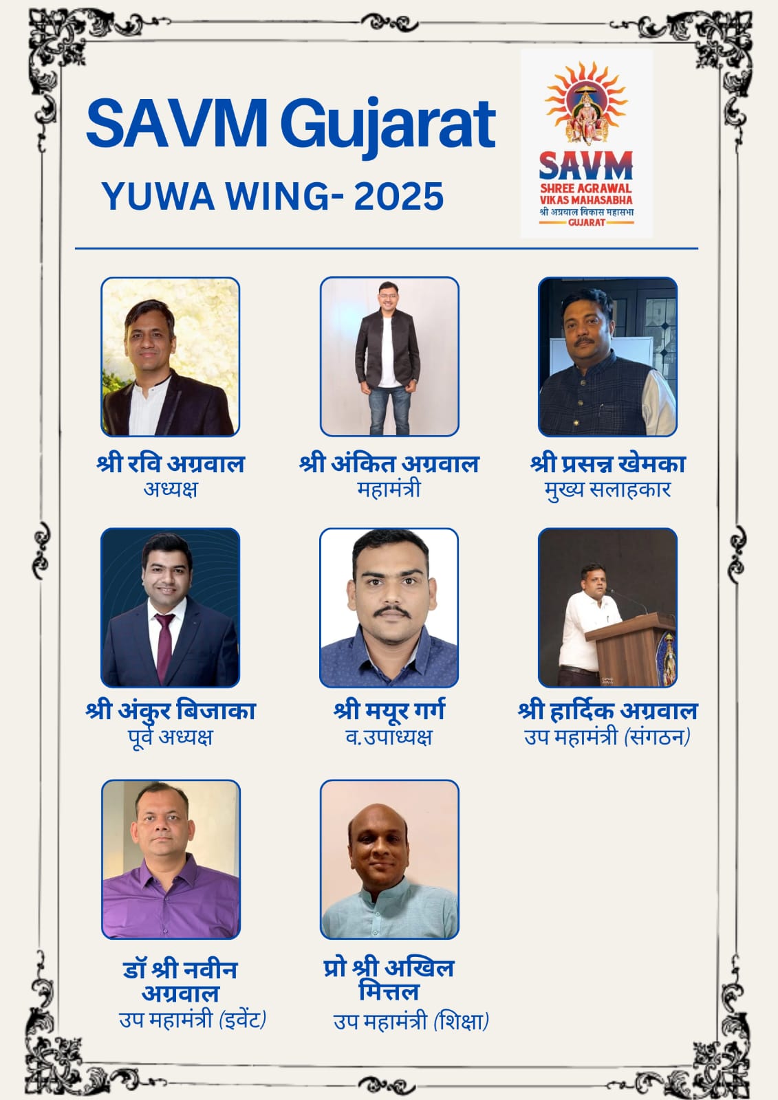 | 5 | श्री मयूर गर्ग गांधीधाम | वरिष्ठ उपाध्यक्ष | 9825925889 |